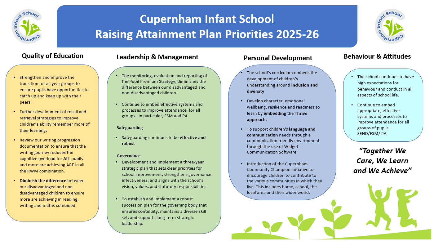 Our school improvement plan provides information regarding the school’s self-evaluation and the priorities that have been identified for 2025-26. It is used to help drive school improvement and its implementation is monitored by school governors.