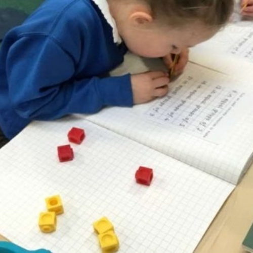 Every class has cue cards visible on their working wall following our say it, make it, draw it, write it, explain it, and are encouraged to use these throughout their learning. It is our aim that this process enables children to develop a secure and rounded understanding of mathematics, making informed decisions about the use of resources and recording their maths in their own way.