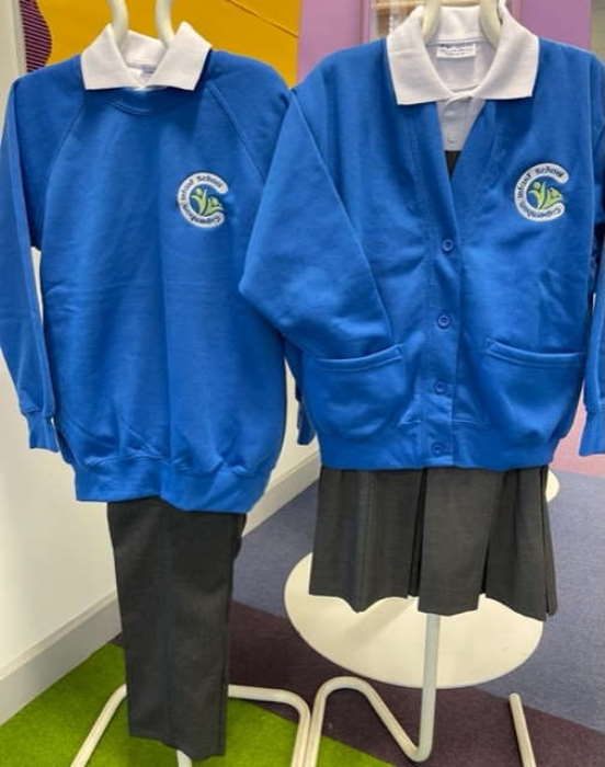 Generic electric blue sweatshirts, cardigans and fleeces can be worn with grey trousers, skirts, shorts or light blue gingham dresses. All uniform items can be generic or alternatively you can buy logo uniform items from Skoolkit. Both new and old logo uniform can be worn until September 2024. Preloved uniform items can be purchased via our PTA group FOCUS at: